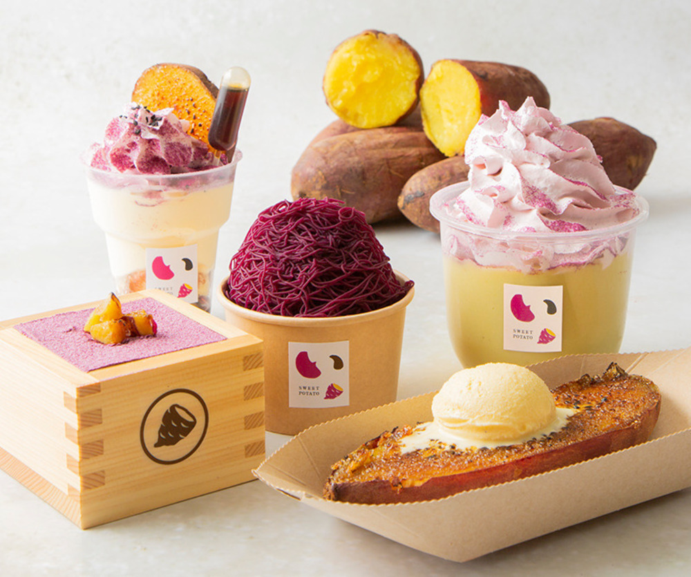 “さつま芋尽くし”のスイーツカフェ「いもやいもこ」原宿に、紫芋モンブランソフトや熟成焼き芋 -