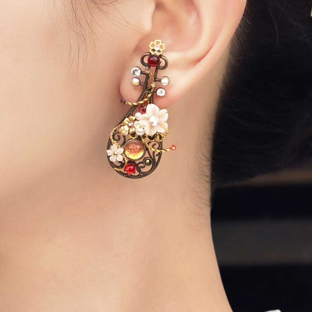 京都発“ピアスのようなイヤリング”「ぴあり」源氏物語・明石の上モチーフの琵琶型ジュエリー -