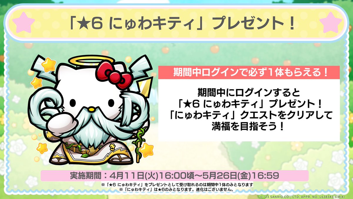 期間中のログインで「★6 にゅわキティ」をプレゼントじゃ?? コラボクエストをクリアしてぜひ満福を目指してくれぃ! #コトダマン #サンリオキャラクター大賞