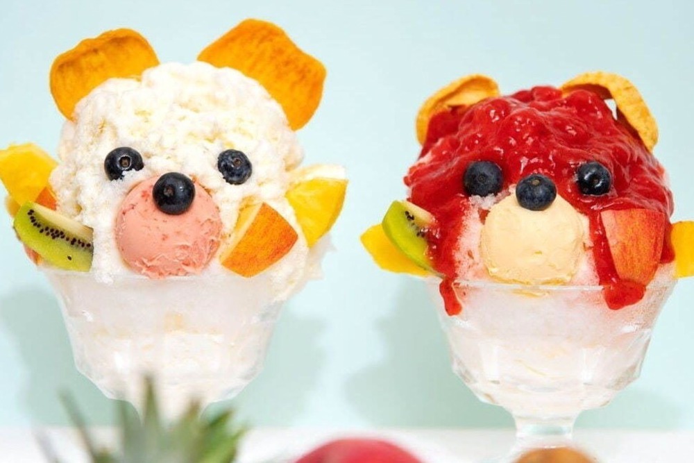 堀内果実園「奈良かき氷 赤くま君・白くま君」フレッシュフルーツ&ドライフルーツをトッピング -
