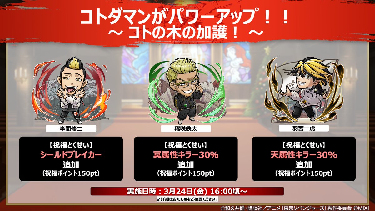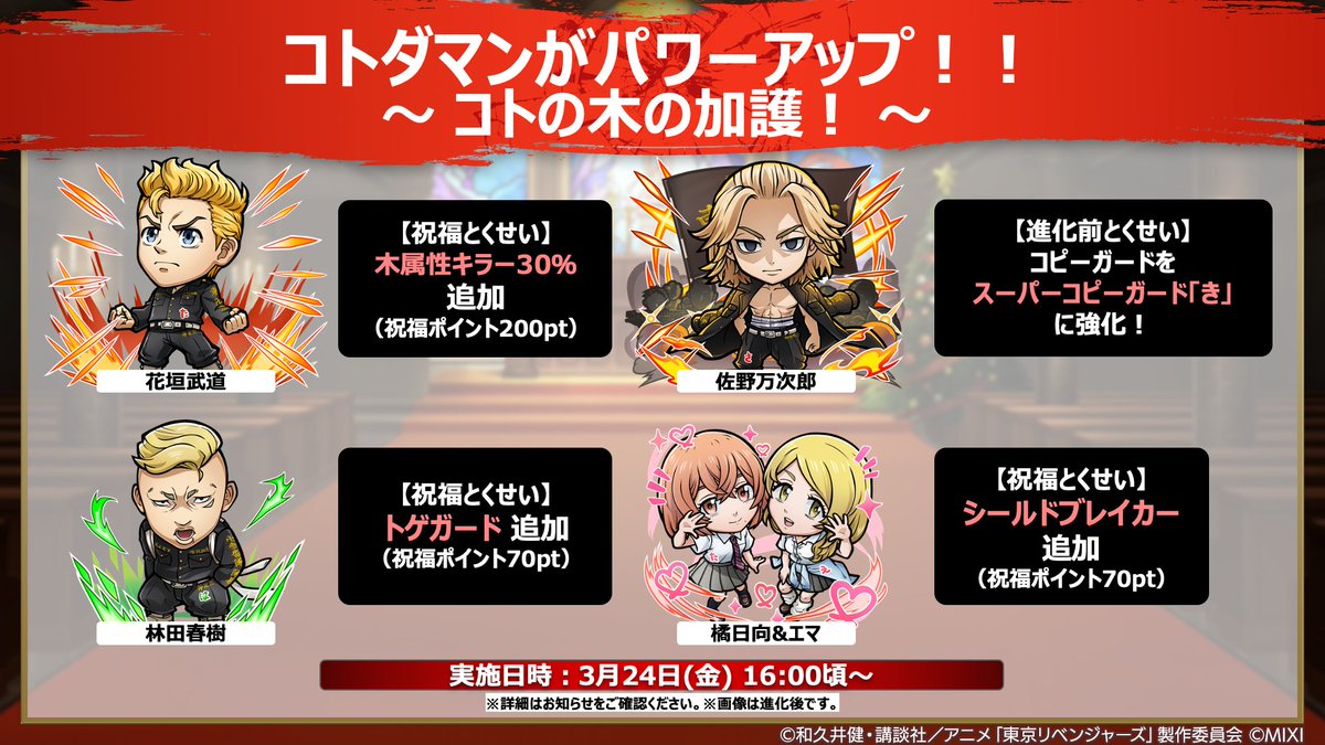 対象となるコラボクエストのドロップ報酬が増量する、特別なクエスト開催中!✨ 1日1回限定じゃ? 見逃さないようにのぅ? #コトダマン #toman_anime #東京リベンジャーズ #東リベ