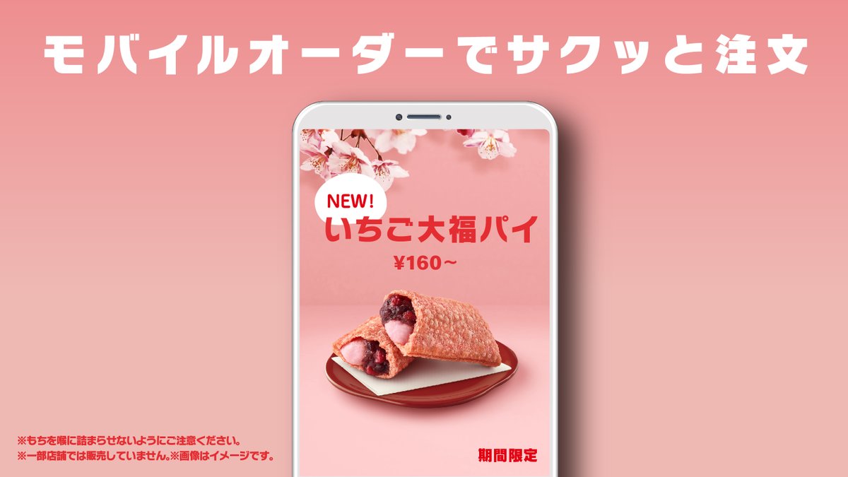 モバイルオーダーなら 注文の列に並ばなくても大丈夫。 いちご大福パイも、 サクッと注文して、 もちっ、ほくっを 楽しめます! #いちご大福パイ #春は遊び心 #マックのモバイルオーダー