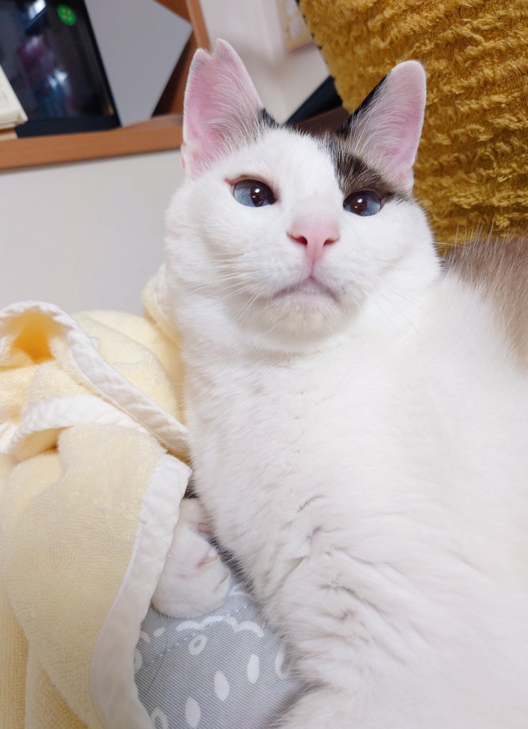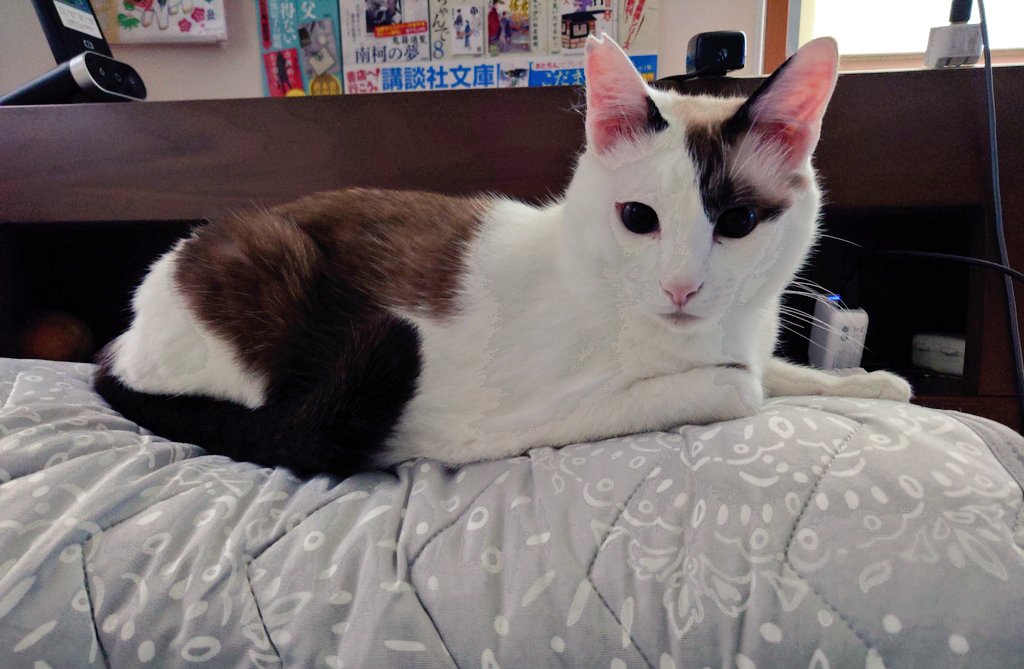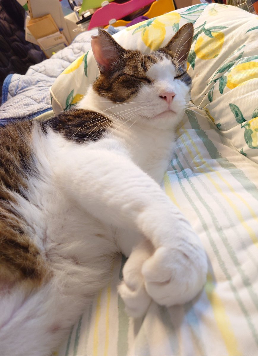 美容院から買い物を経て帰宅したら、もふもふの猫が迎えてくれました。 #N機関 #ちびすけ