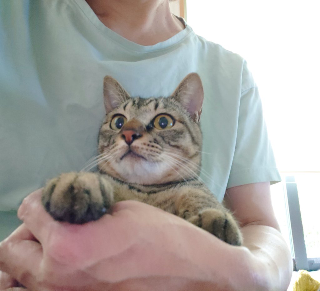 おちび、ひさびさに抱っこの気分だそうです。去年の7月21日、大雨の夜にやってきたちびすけ、ギリギリ生後1ヶ月くらいかなと動物病院の先生に見立てられたので、6月21日をお誕生日にしようと思います。青山剛昌先生と一緒ですね。いい日だ!…