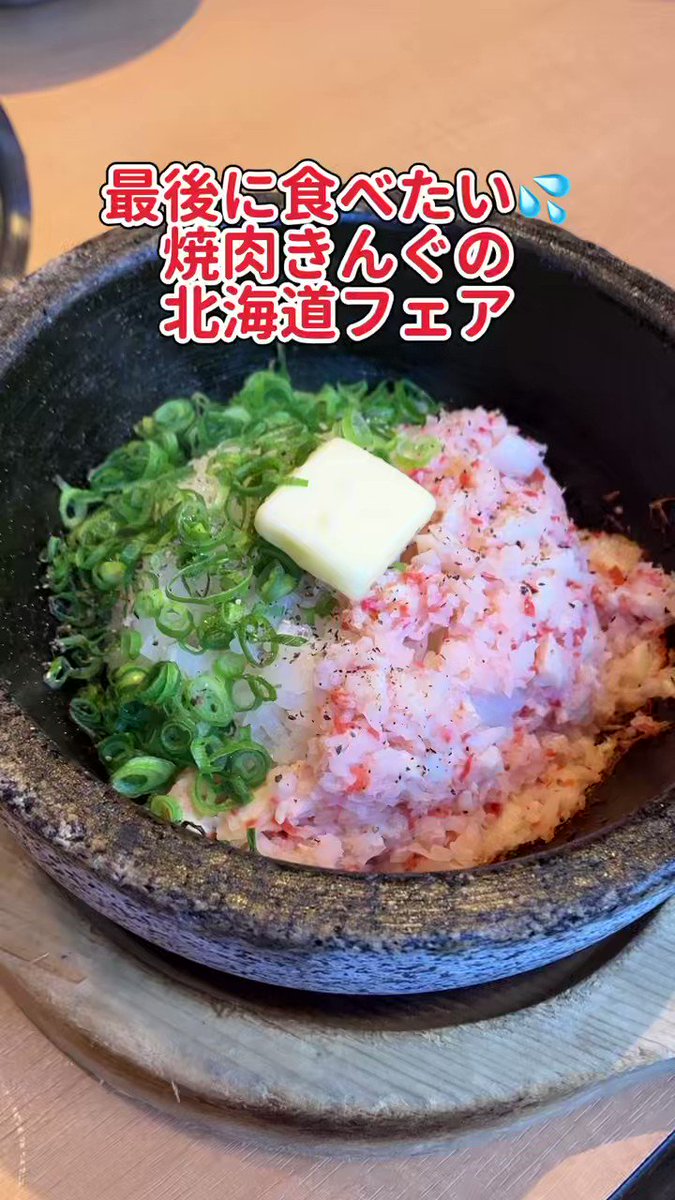 間もなく終了?#北海道フェア❗️ 「紅ずわいがにたっぷり石焼かに飯」のアレンジレシピをご紹介?♀️ ※一部店舗では北海道フェアを行なっておりません。 #焼肉きんぐ
