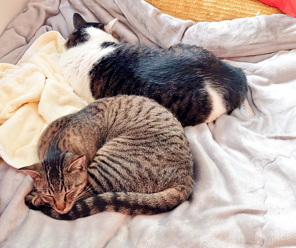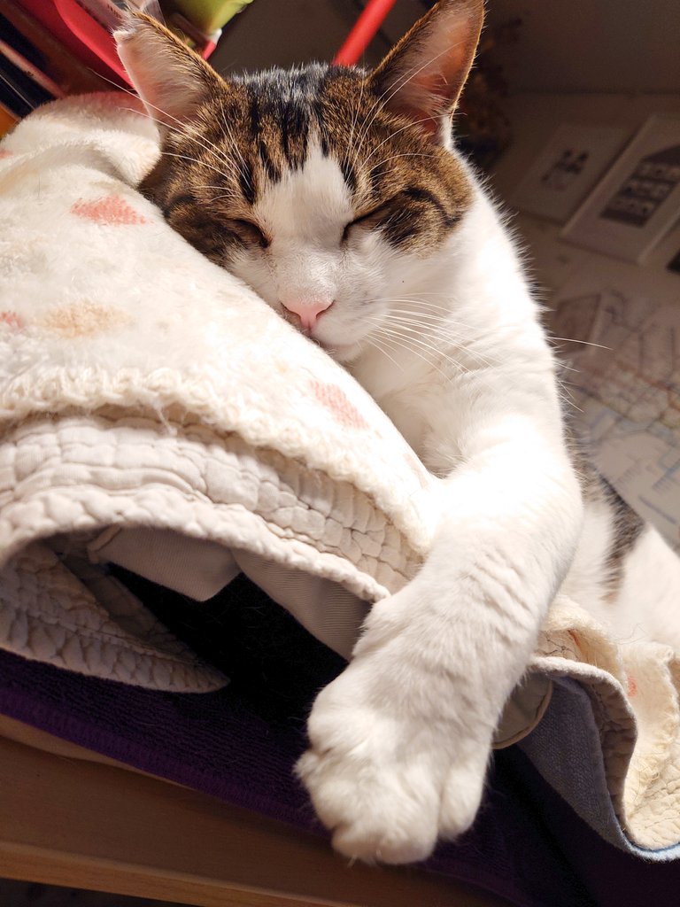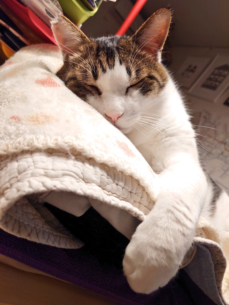 ちぇー、しつじはお仕事かあー、と、タオルケットすきすきボーイにくっついてお昼寝することにした末っ子。どっちにしても甘えん坊です。 大屋根のおかげか、部屋の中は肌寒いくらい。二階は暑いかもだ。 #N機関 #ちびすけ