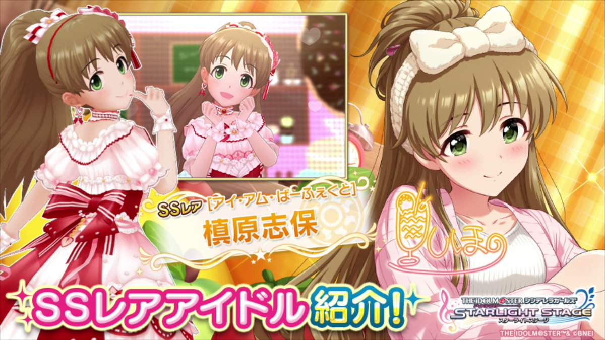 新しいプラチナオーディションガシャ開催です! 今回の新アイドルは以下の2人です! [アイ・アム・ぱーふぇくと]槙原志保(SSレア) [耀きのピルエット]綾瀬穂乃香(Sレア)