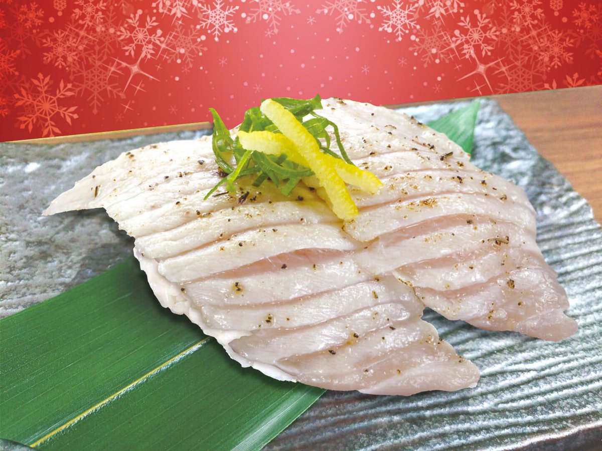 『あぶりびんちょう大とろゆず塩』 脂の乗った極上のびんちょうまぐろを、香ばしいあぶりで食べられます。 とろける美味しさの中に、ゆず塩の爽やかさが堪りません!