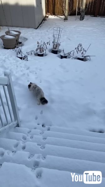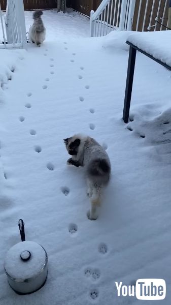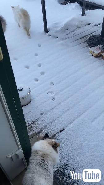 足跡もかわいい 雪が積もった裏庭に飛び出す猫2匹、すると後から続く猫が…… 賢いアイデアに驚きの声「すっげー」「忍者と同じ技法」【カナダ】