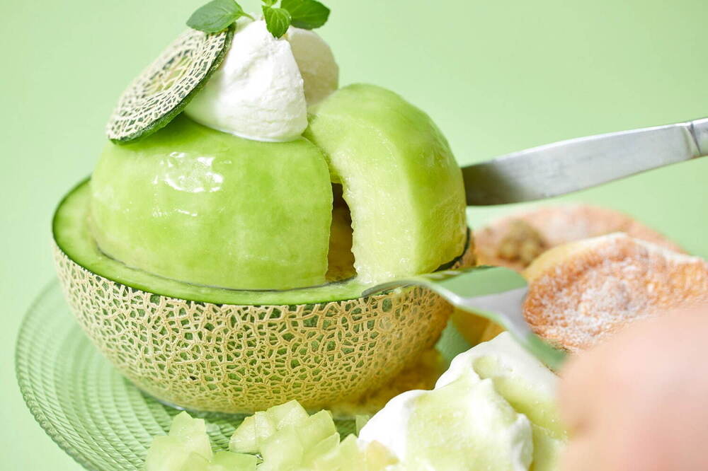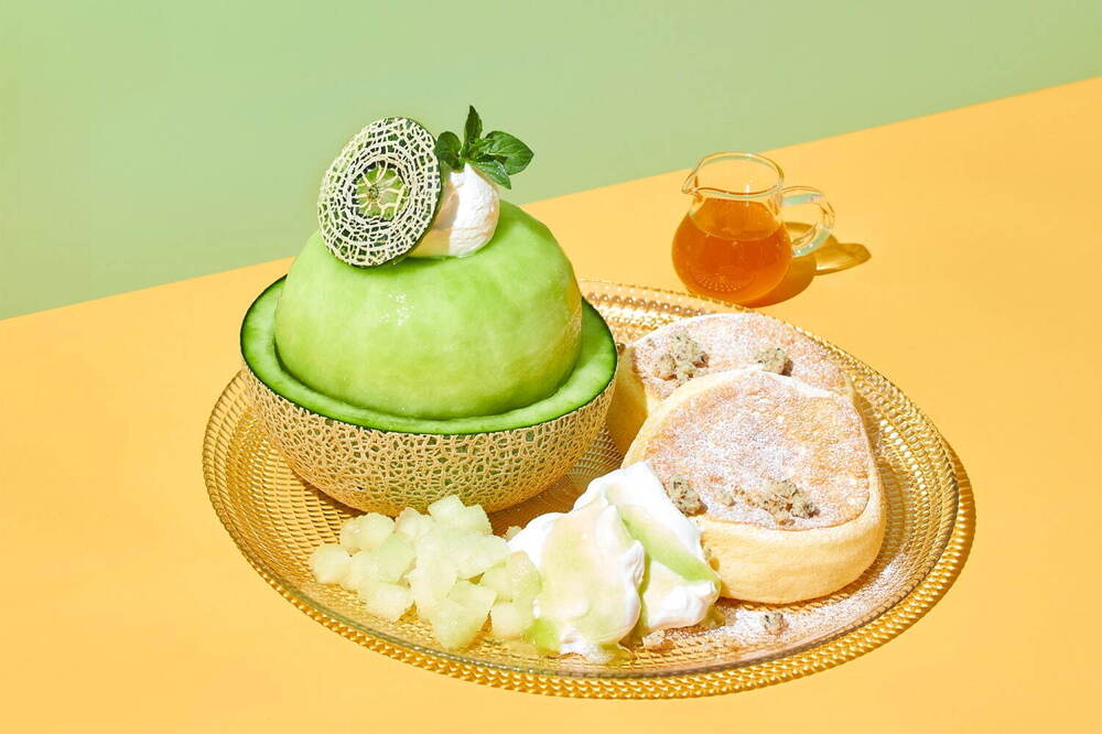フリッパーズ「奇跡のパンケーキ まんまるメロン」ゼリー&レモンソルベを忍ばせた“丸ごと国産メロン” -