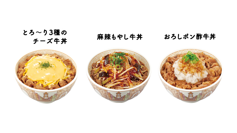 まだ起きているみなさんに質問です。 疲れているときにあなたが食べたいのは... ①とろ~り3種のチーズ牛丼 ②麻辣もやし牛丼 ③おろしポン酢牛丼 ④その他 理由も添えておしえてください? #すき家 #夜ふかしすき家