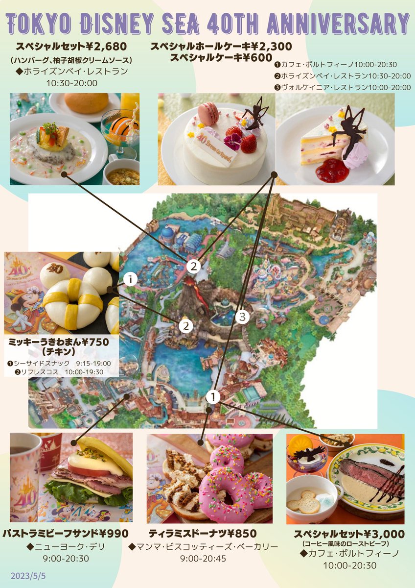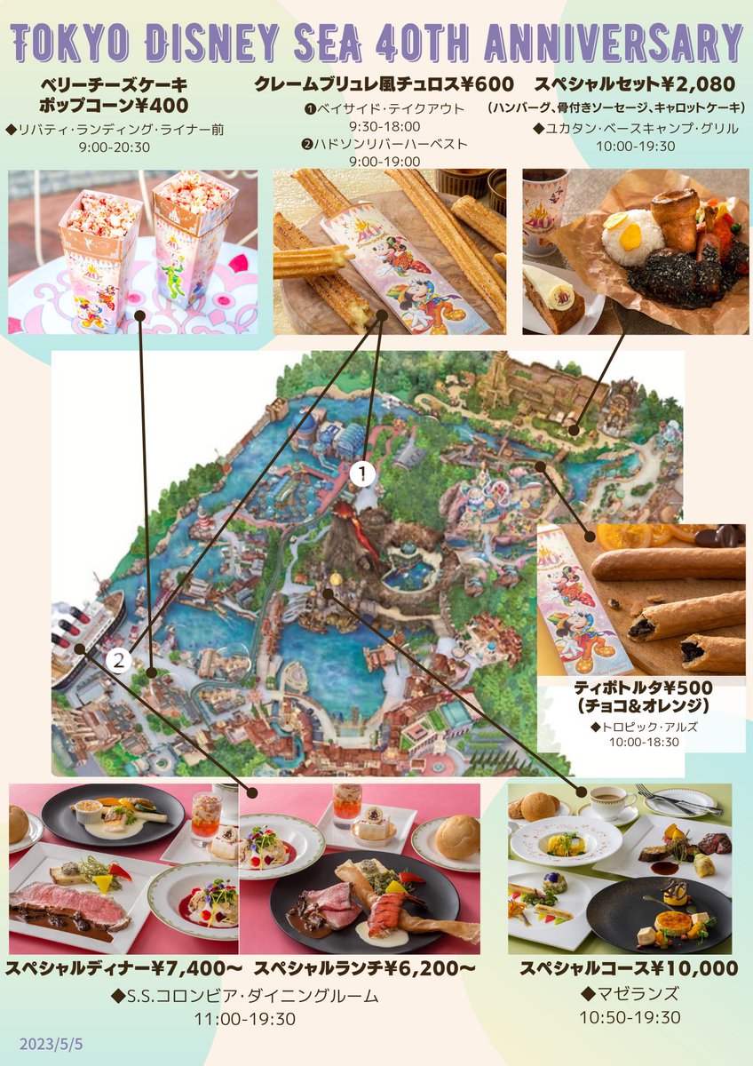 ディズニーランドの40周年グルメまとめ?? 人気なのはクレームブリュレ風チュロスとミッキーうきわまんかな?もう食べたよ〜って人?♀️