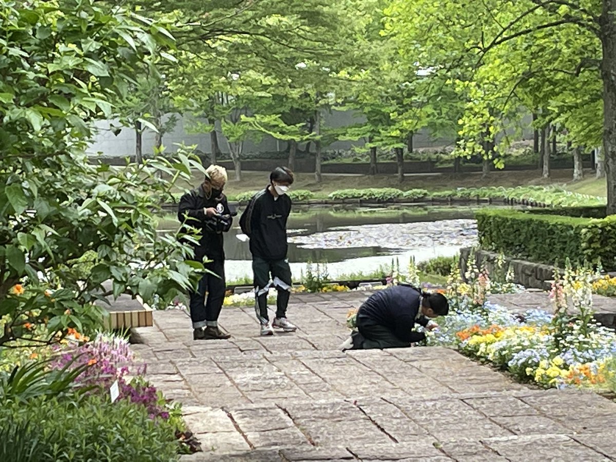 あ、やべぇ写真出ましたね。 エヘエヘ、花可愛いねって言いながら花を激写する私を撮ってる撮影クルーさんがこちら。