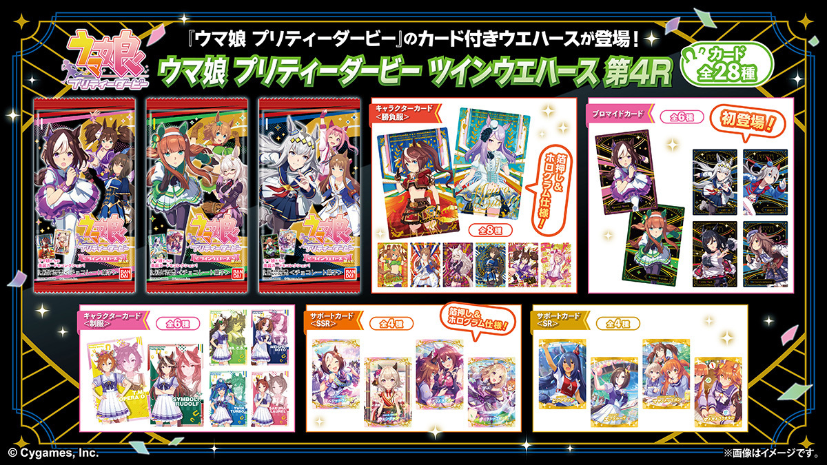 \\✨発売開始✨// #ウマ娘 プリティーダービー ツインウエハースの第4弾が発売中! お菓子売り場をチェック☑ ▷