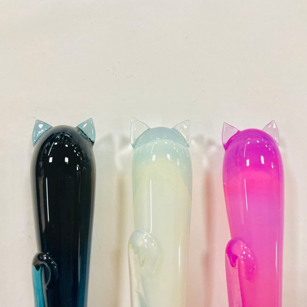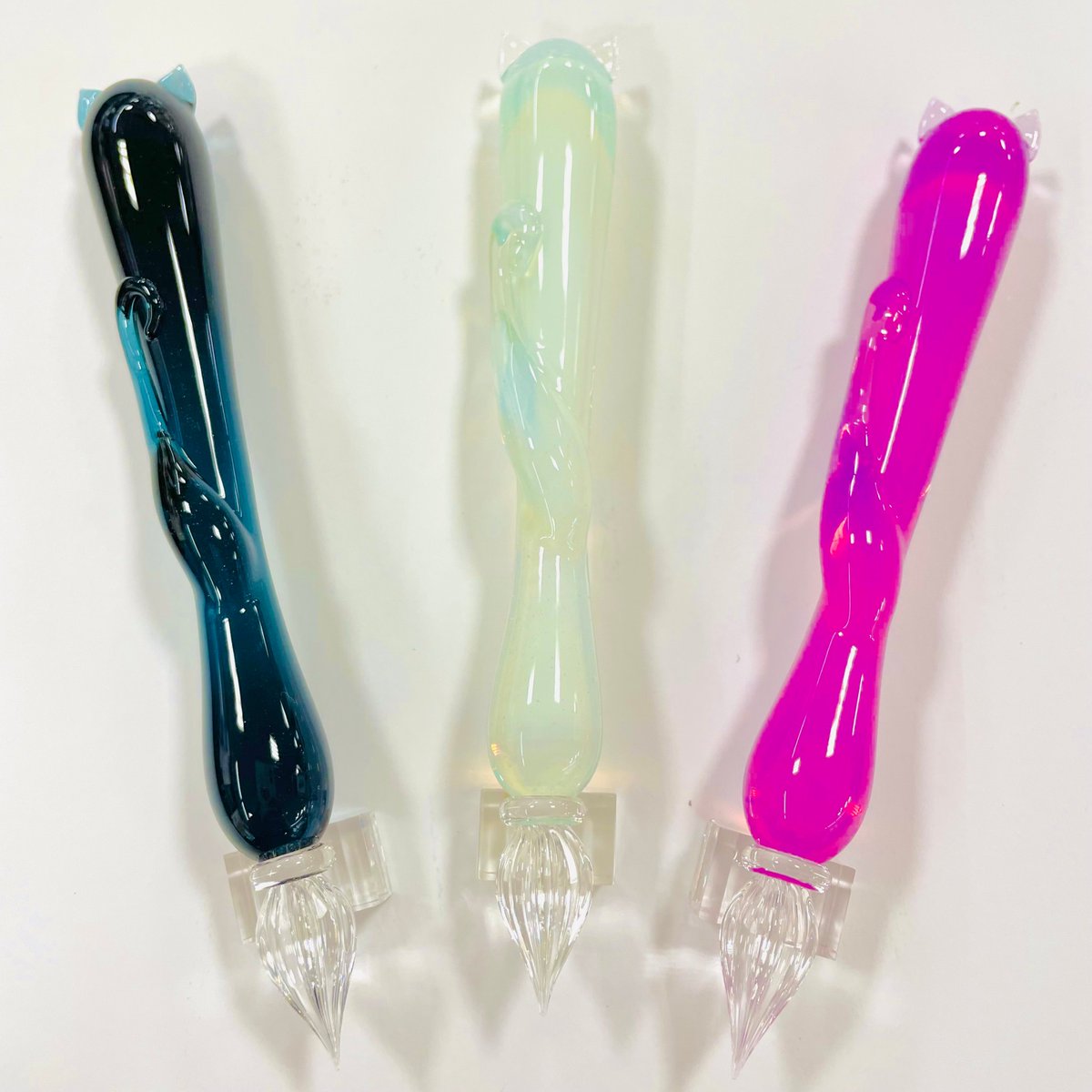 本店3Fに #ぐり工房 の #ガラスペン が入荷しました? 夏らしい涼しげな飴玉?イメージのストライプとねこちゃん?モチーフの2種類です #ねこ ちゃんは耳としっぽつき(!)(のんちゃそ)