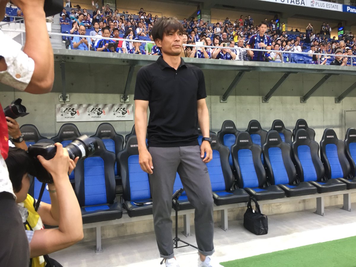 宮本監督もアップを見にベンチへ。 チームは一丸となって一戦一戦闘います。 共に闘いましょう! #ガンバ大阪 #GAMBAOSAKA #Gサマ