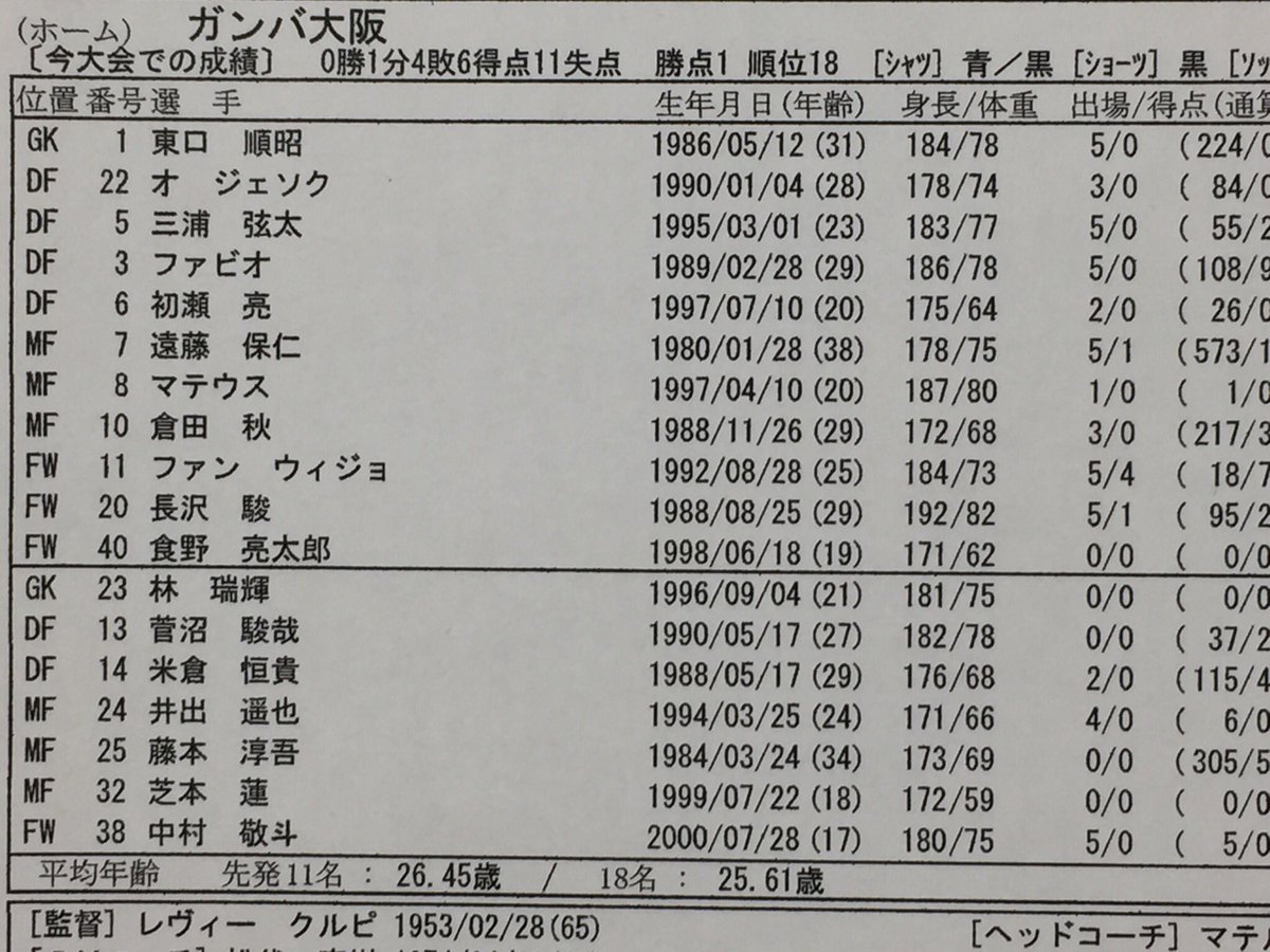 メンバーが発表されました! 食野選手が初出場、そして、芝本選手も初のベンチ入りです! U-23で得点を取っている食野選手。その勢いをトップチームでも期待しています!! #はるファン #ガンバ大阪 #GAMBAOSAKA