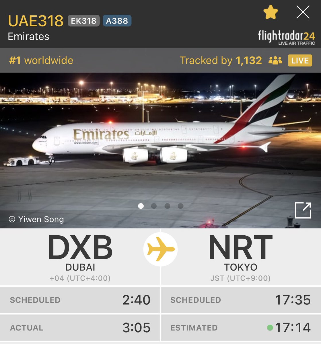 ガーシー氏が乗ってると思われるエミレーツの成田行きが、かなりウォッチされてます。 #ガーシー #ドバイ