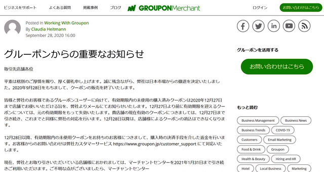 【返金対応も】米グルーポンが日本撤退を発表