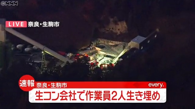【速報】生コン工場内のサイロで生き埋め、作業員2人が死亡 奈良・生駒市