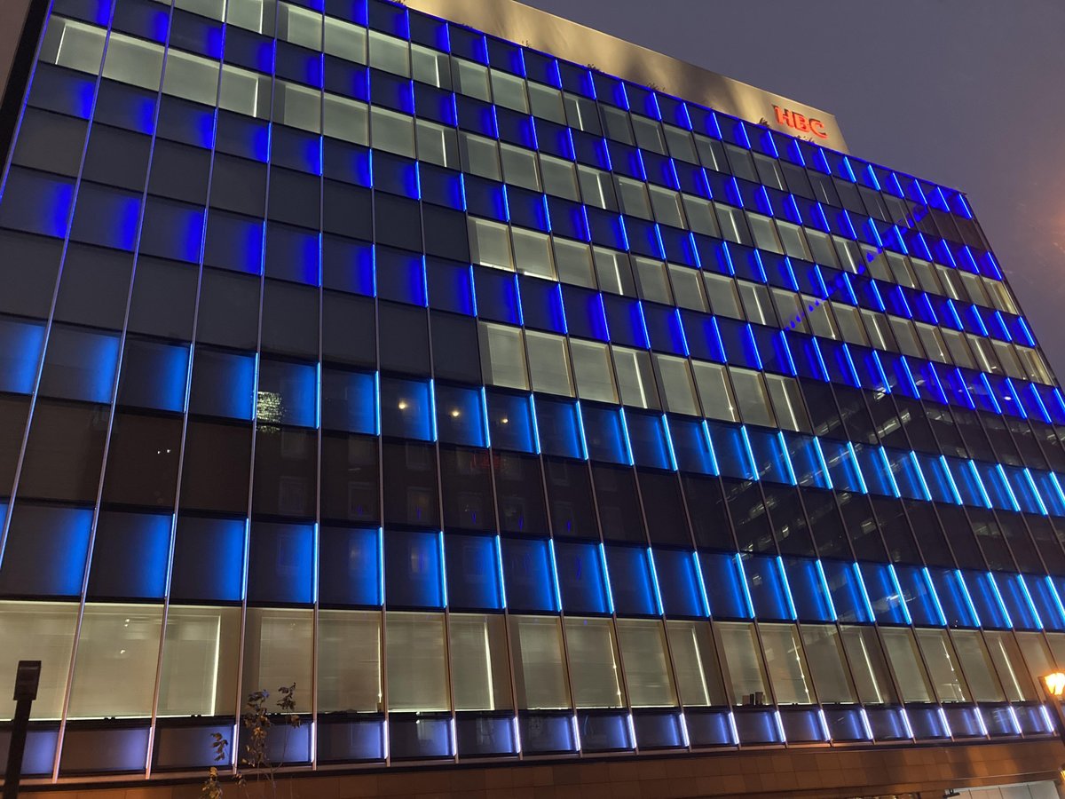 サッカーワールドカップ日本代表は初のベスト8進出をかけ、今夜クロアチア代表と戦います!HBCも社屋をブルーライトアップして日本代表に北海道からエールを送ります!日本に勝利を‼ #日本代表 #サムライブルー #ブルーライトアップ