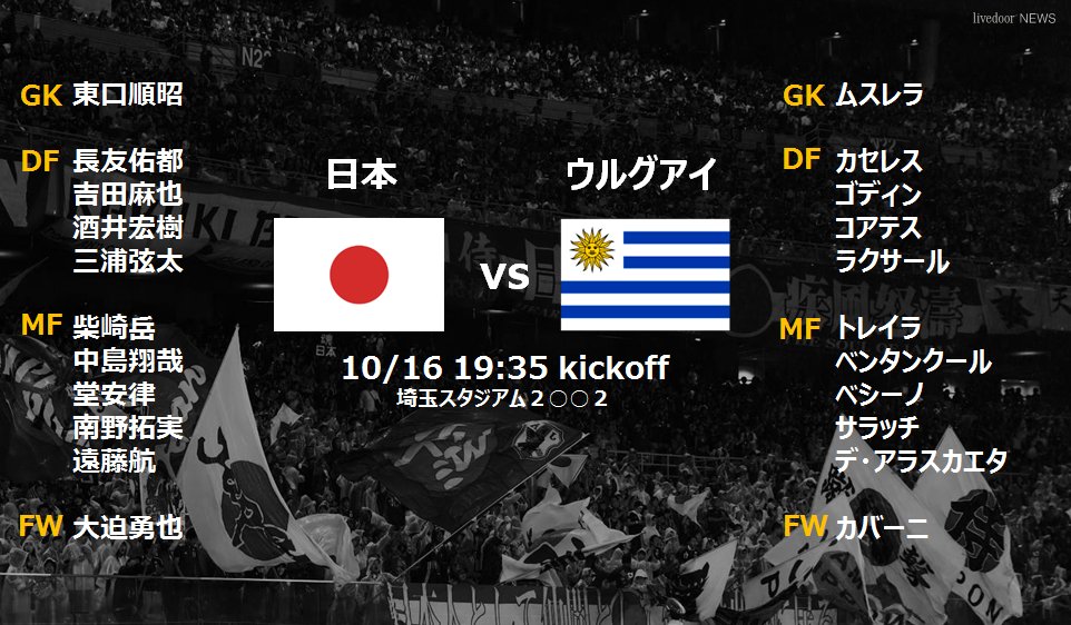 サッカー日本代表スタメン発表?? ウルグアイ代表との試合は、 このあと19時35分キックオフ!?? #jfa #dai