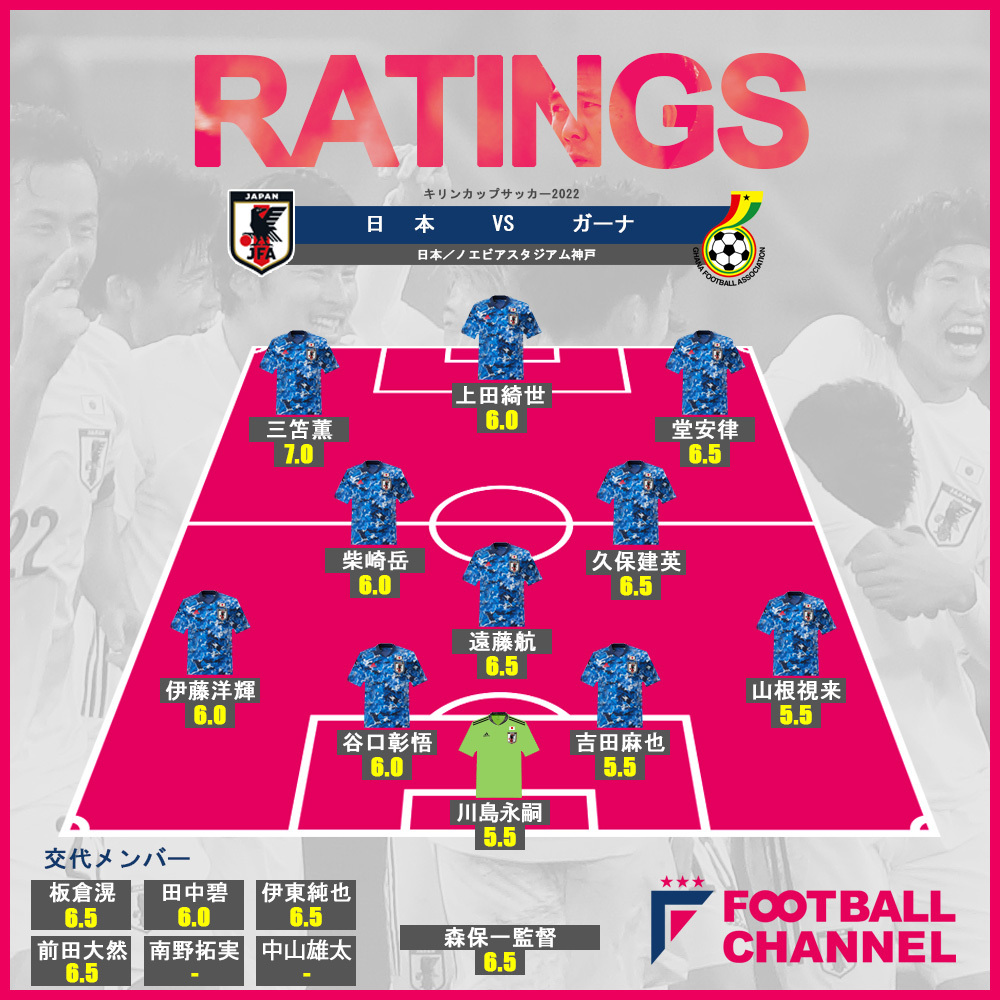 【サッカー日本代表どこよりも早い採点/キリンカップサッカー2022】 ガーナ戦、やはり三笘薫はすごい! 代表初ゴールをあげた久保建英の評価は?