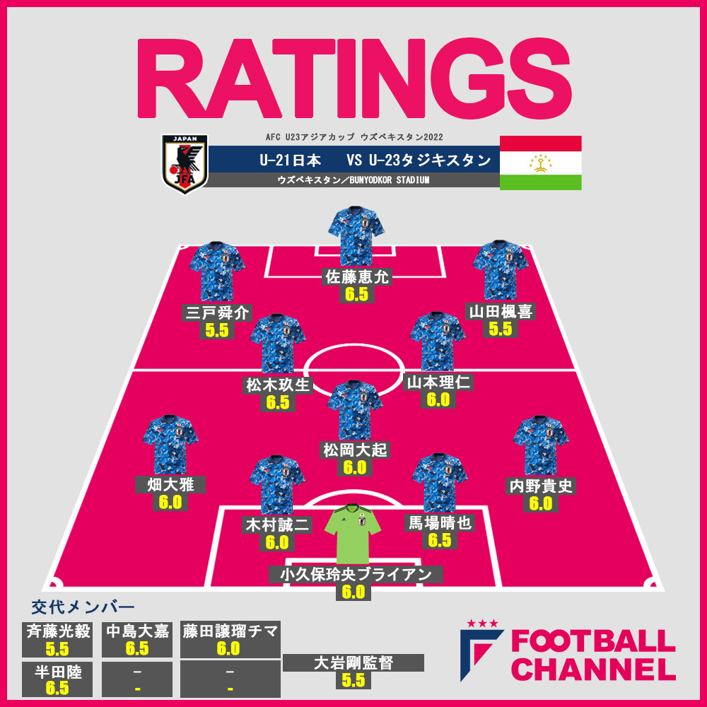 【サッカーU-21日本代表どこよりも早い採点/AFC U-23アジアカップ】 U-23タジキスタン戦、スッキリしない勝利…初先発・松木玖生らの評価は?