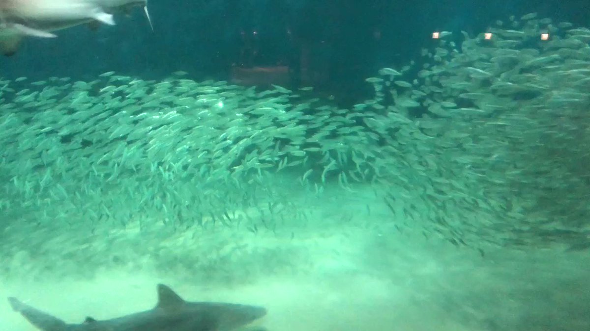 「大洋の航海者」水槽の様子をお届けします。 ときどきアップでサメ達が通り過ぎます。お見逃しなく! #おうちでかさりん #休園中の動物園水族館 #ツイッターで楽しむ水族館 #エア博物館