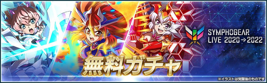 【お知らせ】 「シンフォギアライブ2020→2022開催記念無料ガチャ」が開催中! ★5カード1枚確定の「11回ガチャ」が、期間中1日1回無料で引けます! #