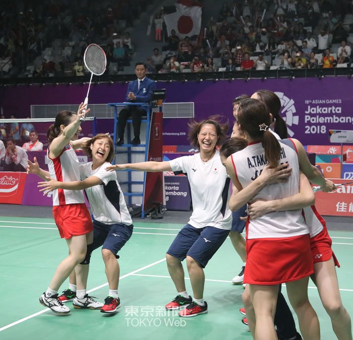 #ジャカルタ で行われている #アジア大会 バドミントン女子団体で中国を破って日本が #金メダル を獲得しました。