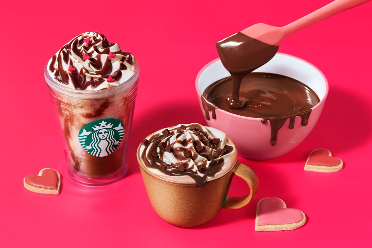 スタバのバレンタインシーズン限定メニュー第1弾。生チョコレートソースを使用したフラペチーノやモカが販売中です。