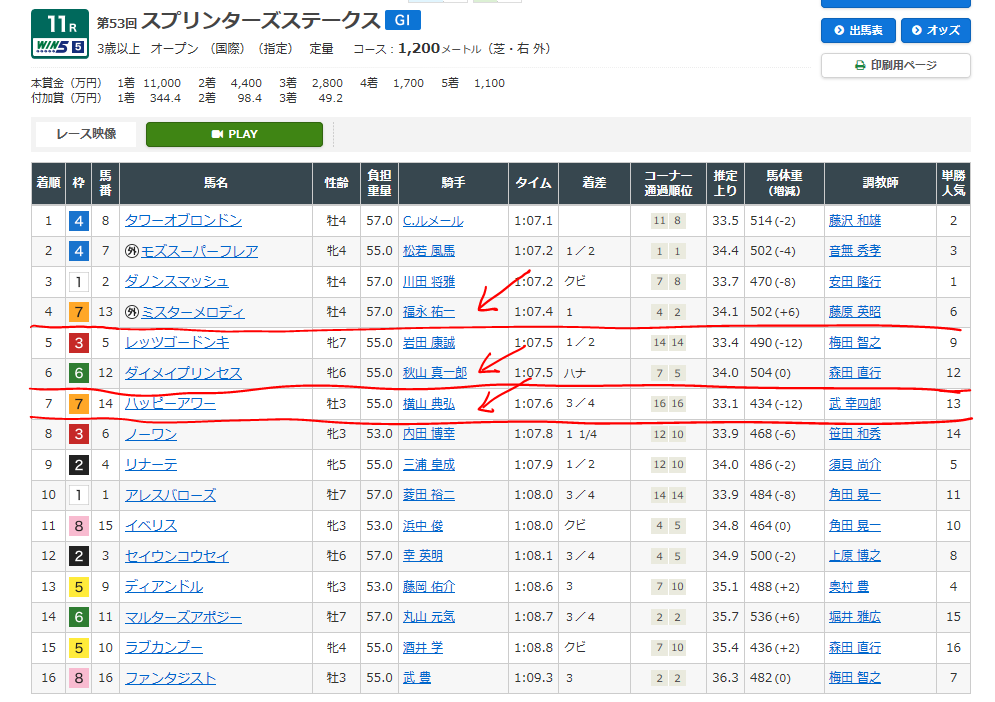 スプリンターズステークス(GI)を優勝したのは、#タワーオブロンドン! 見事、秋の短距離王の座に輝く!初めてのGI制覇だよ。おめでとう! #うまび #スプリンターズステークス