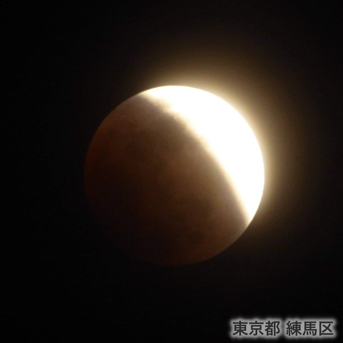 半分赤くなってきた? #皆既月食 #スーパーブルーブラッドムーン