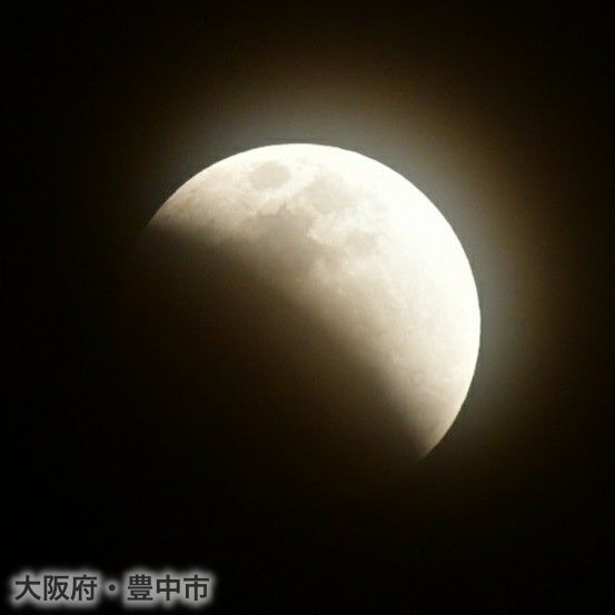 いまのところ各地で見えているようですが…西から雲が、雲がぁ!もうすこしで皆既月食ですよ! #皆既月食 #スーパーブルーブラッドムーン #Su