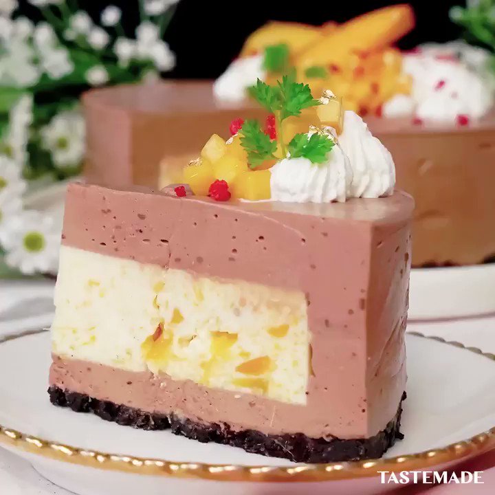 【相性抜群!】マンゴーとチョコレートのムースケーキ