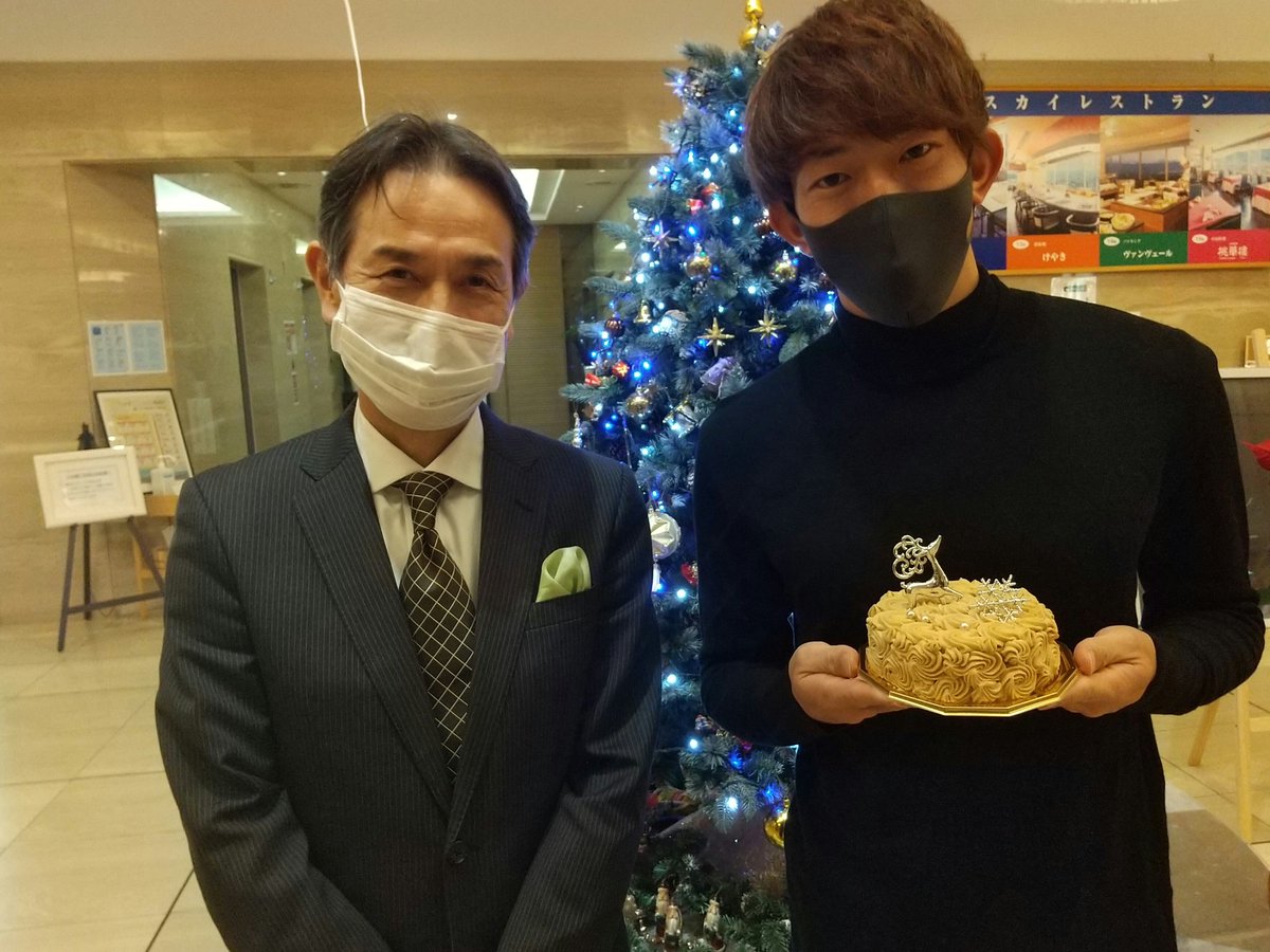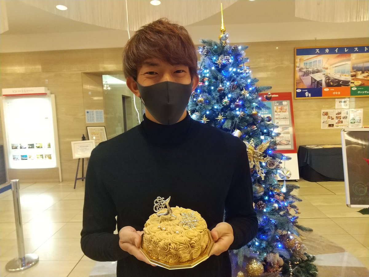 太田修介選手に、結婚祝いで #甲府記念日ホテル 様からクリスマスケーキをいただきました。 「ドゥルセ」というブロンドチョコレートです。 ありがとうございました。 サポーターの皆様、素敵なクリスマスイブをお過ごしください。