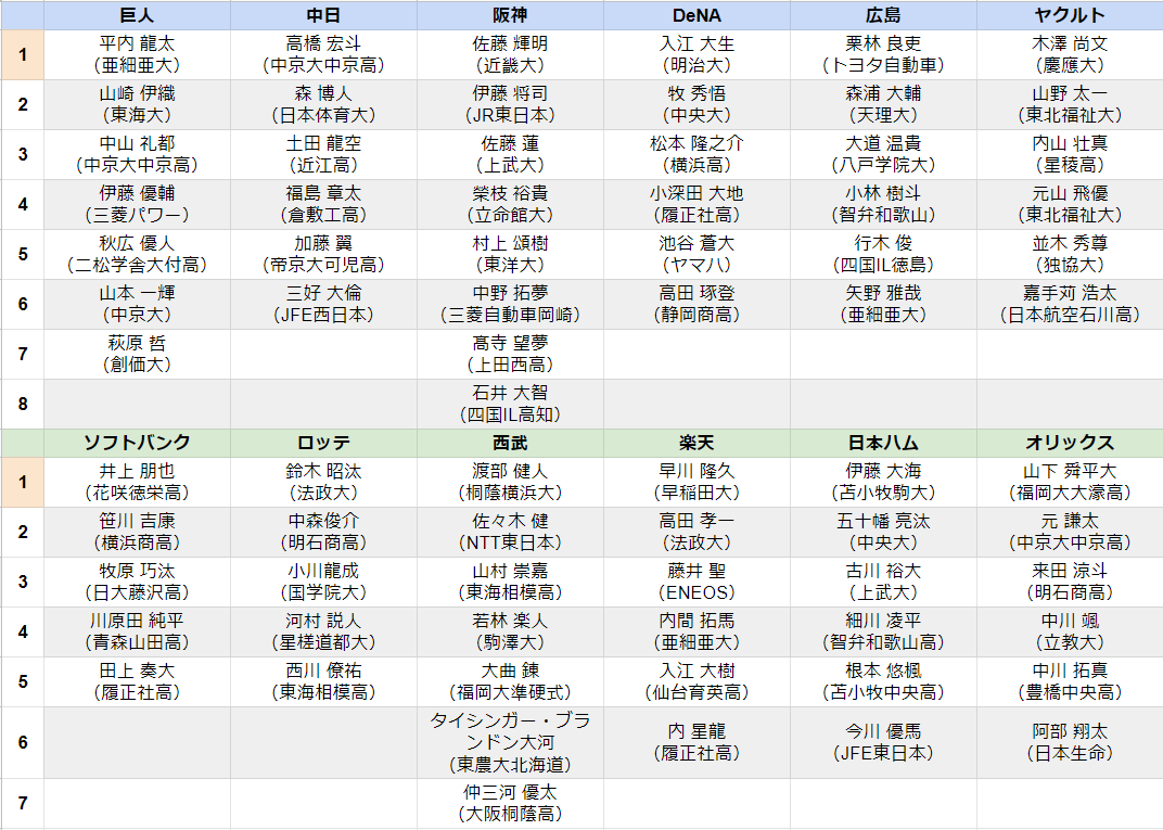 【ドラフト会議2020】12球団の交渉獲得選手まとめ