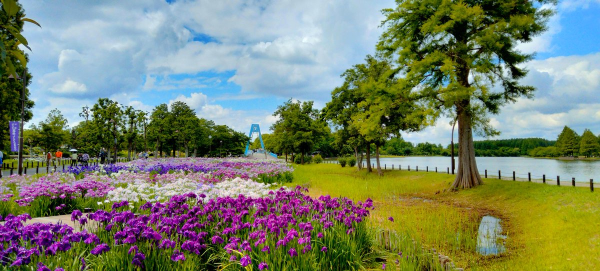 【ハナショウブ開花情報】 梅雨の晴れ間のはなしょうぶ園。まさに見ごろを迎えております。 (撮影:令和4年6月9日14時頃) #水元公園 #