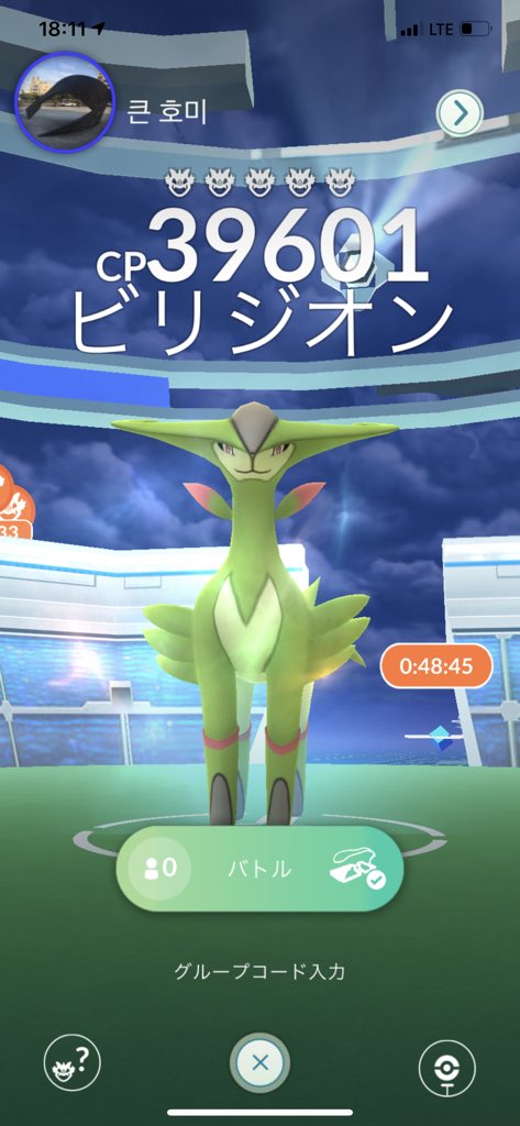 アジアードスタジアムのジムにビリジオンが出てます‼️ でも誰もやってなくて3人じゃ倒せない? 誰か助けてください!!!