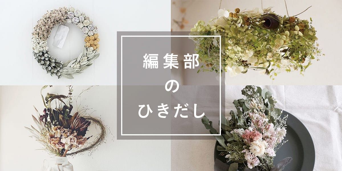 編集部スタッフの頭の中には素敵な作品や欲しい作品があつまったひきだしがあります。そんなひきだしの中から今回は、秋色をまとった「ドライフラワー」作品をご紹介します。