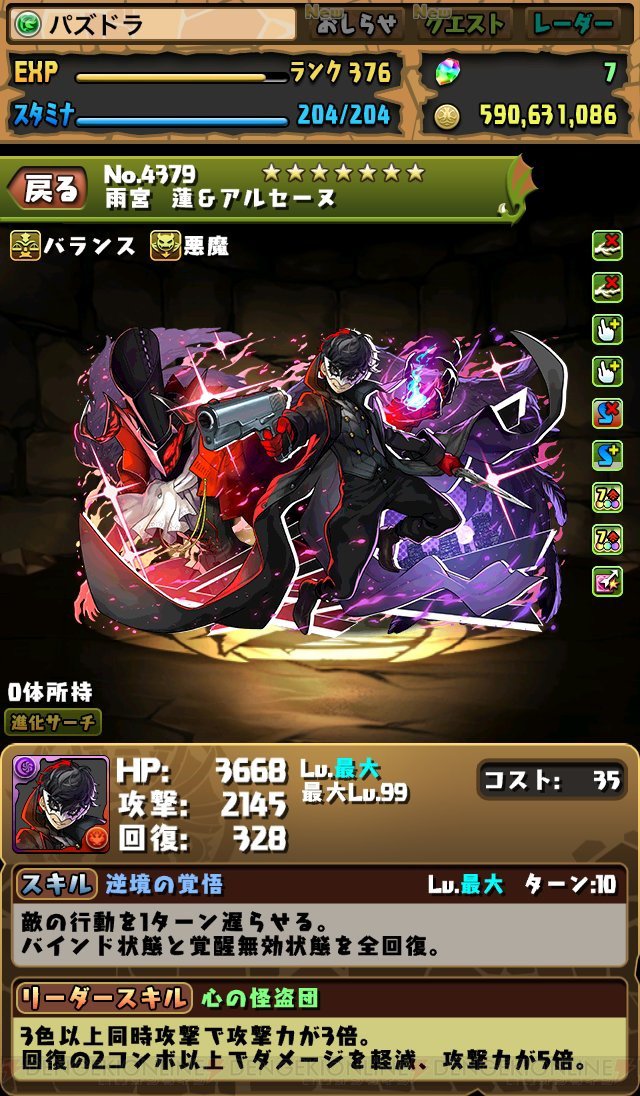 『パズドラ』×『ペルソナ』コラボのアイギス、鳴上悠、モルガナらのステータスが判明