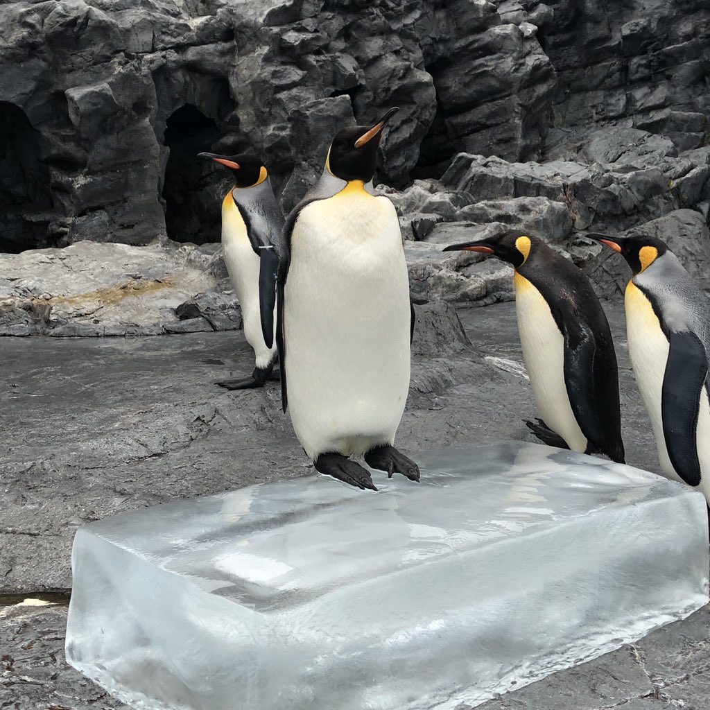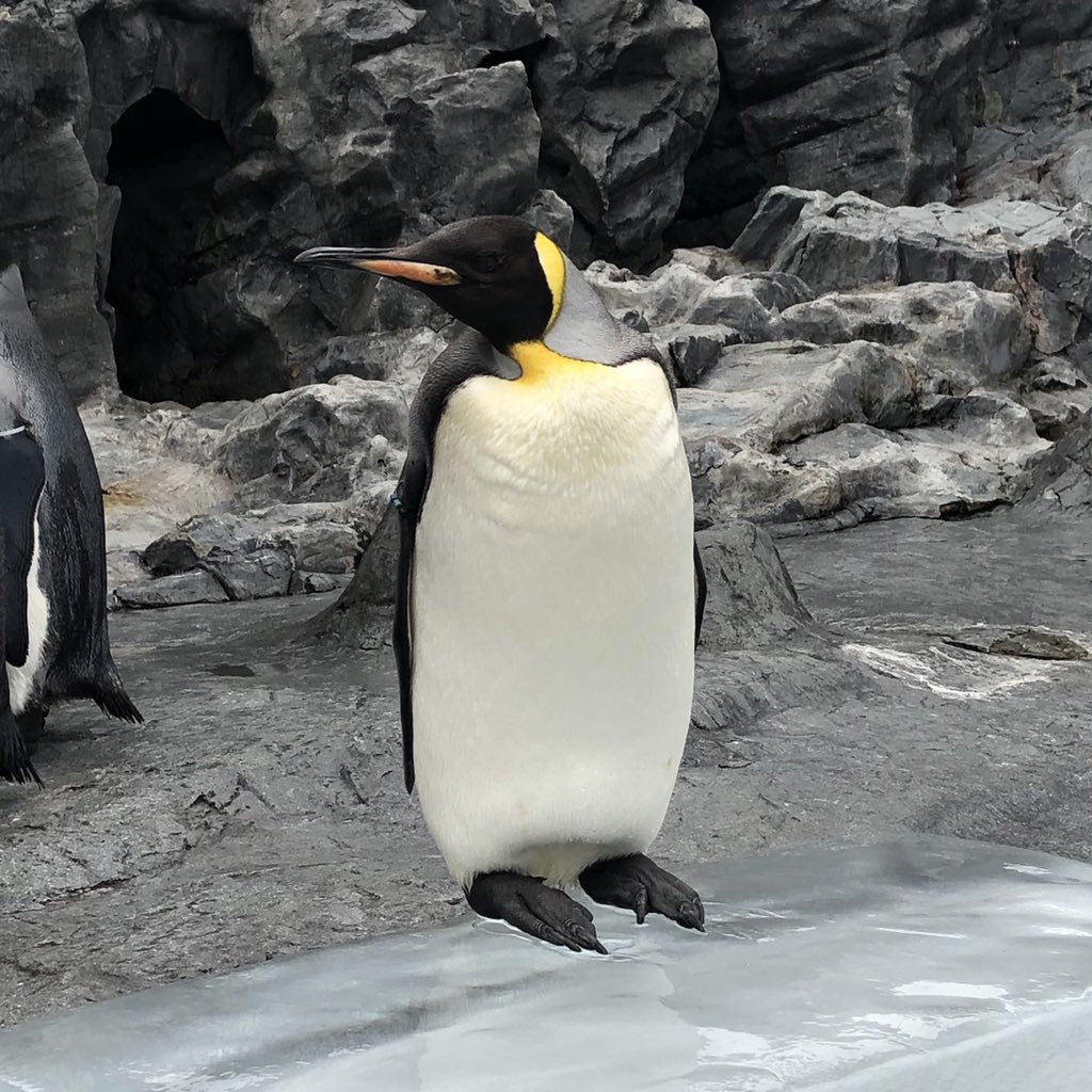 先日いただいた氷のプレゼント? ぺんぎん館で唯一氷の上に立ったのは昨年生まれのキングペンギンでした? #旭山動物園 #a