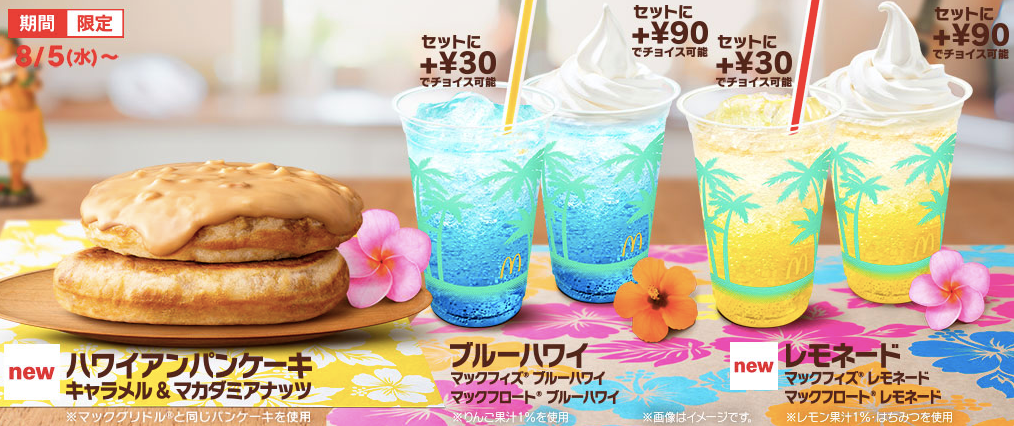 マクドナルド「マックでどこでもハワイ!!」のハワイアンメニュー各種が8月5日(水)より期間限定で新登場????