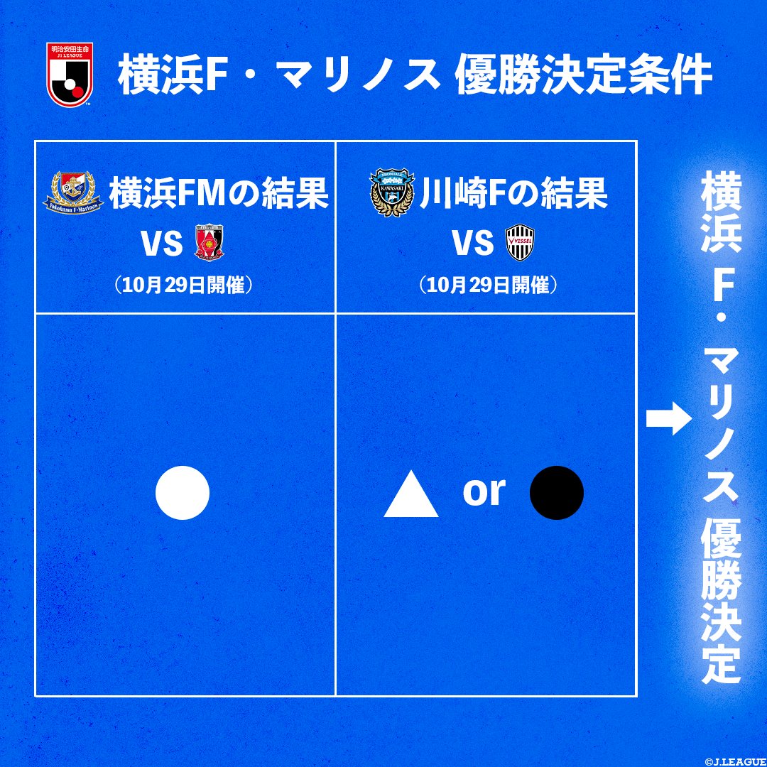 / 横浜F・マリノス 優勝決定条件☑️ \ 横浜F・マリノスのリーグ優勝確定の条件についてまとめました? ①横浜FMが勝利し、川崎Fが引き分け以下の場合 @