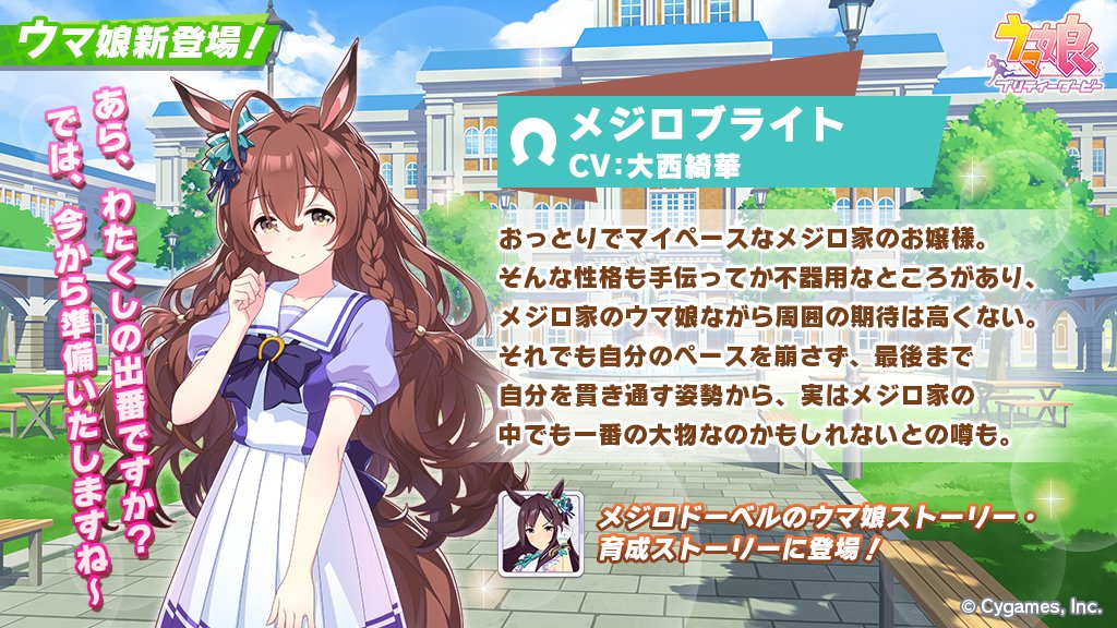【新キャラ登場】 メジロドーベルのウマ娘ストーリー・育成ストーリー内にメジロブライトが登場! メジロ家のウマ娘であり同期でもあるドーベルとブライトが紡ぐ物語にご注目ください!