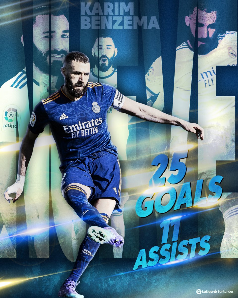 2⃣6⃣ ゴール 1️⃣1️⃣ アシスト #レアルマドリード 優勝を決めた #ベンゼマ 選手のここまでの成績? #LaLigaSan