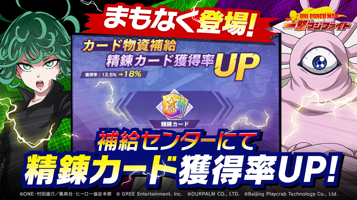 【イベント予告】 精錬カードの獲得率UP開催まであと1日❗ 精錬カードを手に入れてキャラ強化を目指そう? #ワンパンマン #マジファイ