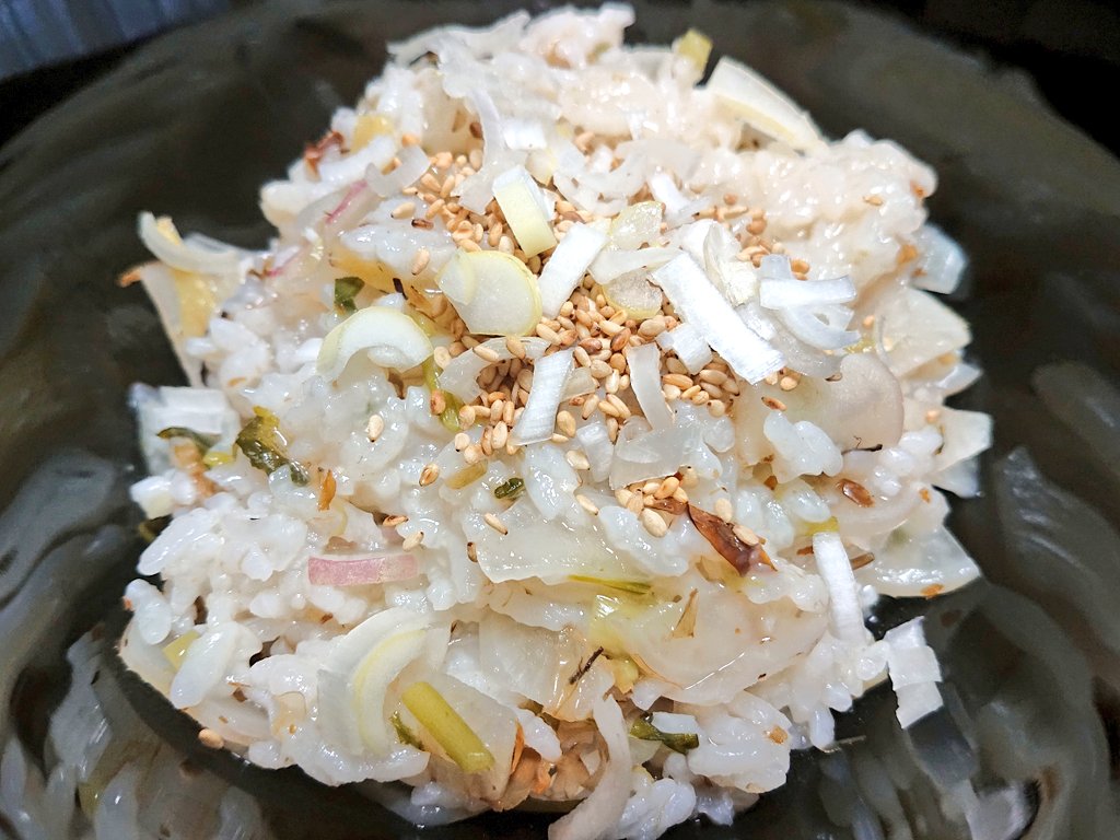 きょうは1月7日、 #七草粥の日 ッつーことで、伊藤家の #七草がゆ をどうぞ✨? ※パックのカツオ出汁に鰹節も揉んで細かくしたのを入れて炊き、生姜を入れてます。味付けは塩とちょっとだけ醤油、刻みネギと煎りゴマでいただきます?