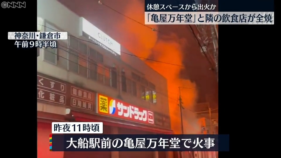 亀屋万年堂の大船店が全焼しました。けが人はいません。